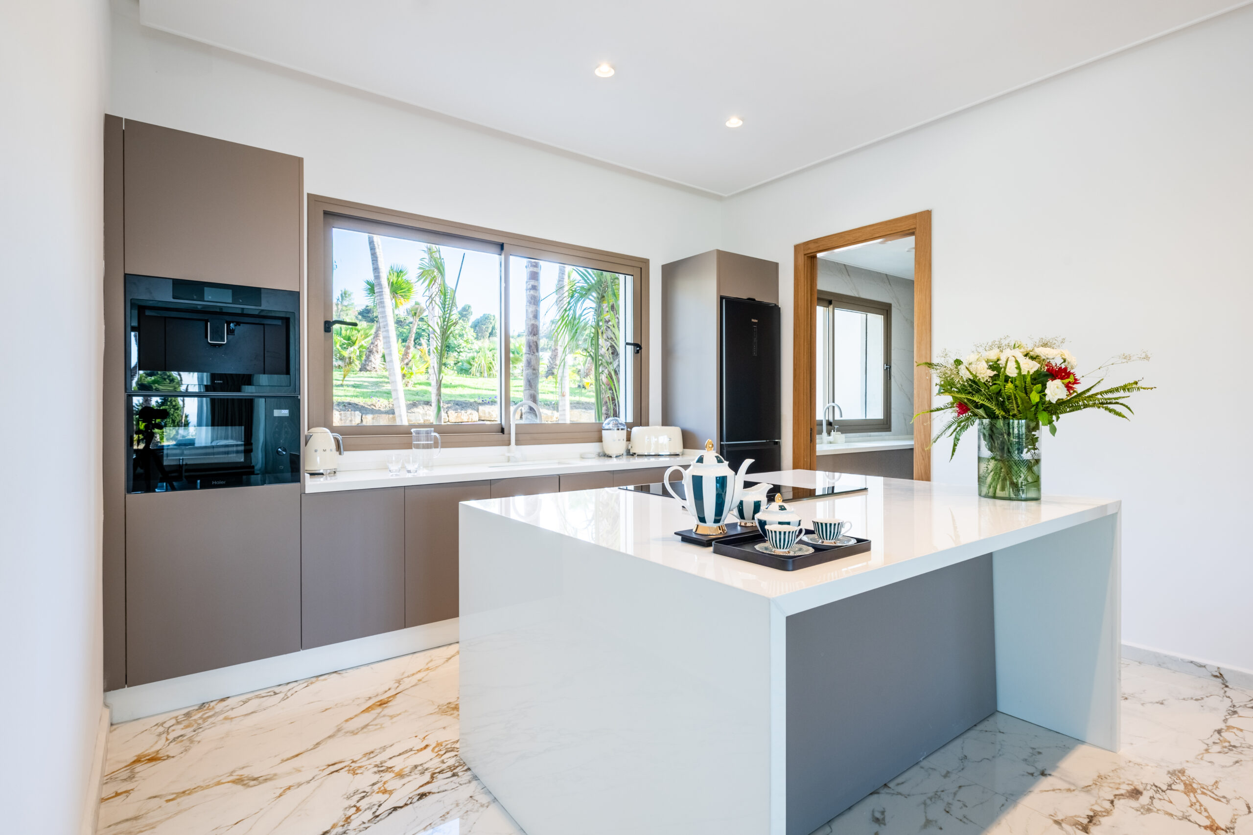- Cuisine : Cuisine américaine équipée (four, micro-ondes, lave-vaisselle, machine Nespresso), parfaite pour préparer des repas maison ou accueillir un chef privé.